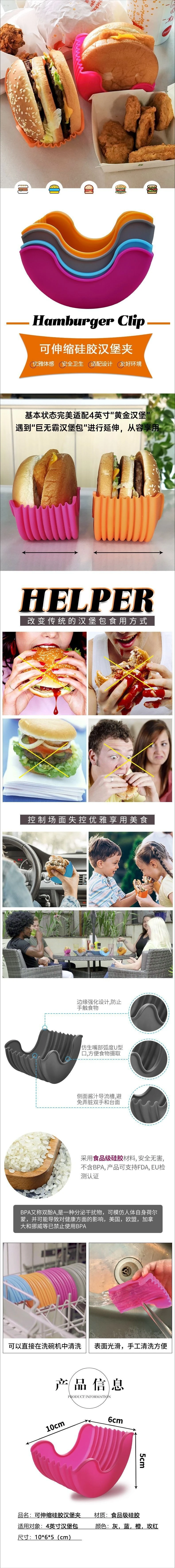 Set of 4 Retractable Hamburger Holders - Washable Silicone Burger Clip Rack for Sandwiches and French Fry Sauces